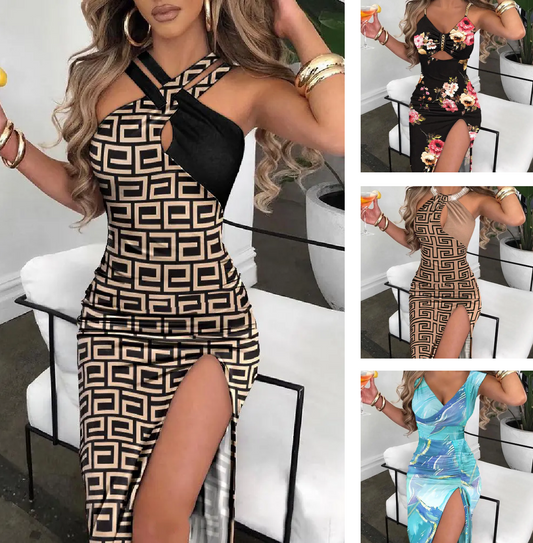 2024 noua rochie sexy cu fanta elastica imprimata