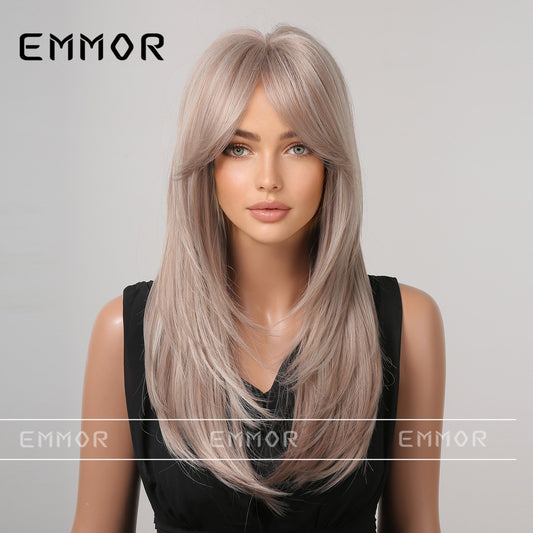 2024 Noua perucă din fibră gradient glugă completă, figură opt breton păr drept de lungime medie