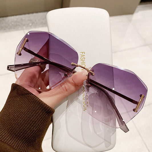 2024 Ochelari de soare poligonali versatili, rezistenți la UV, fără ramă, ochelari de soare gradient