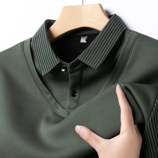 🔥【M-4XL】Set de cămașă polo cu mâneci lungi de toamnă și iarnă din două piese pentru persoane de vârstă mijlocie și în vârstă