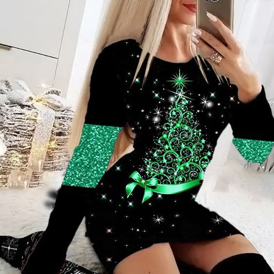 🎄🎉【Christmas Sales】2023 Rochii de Crăciun cu mânecă lungă imprimate de toamnă și iarnă