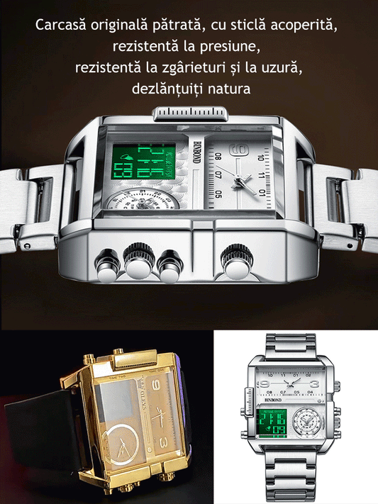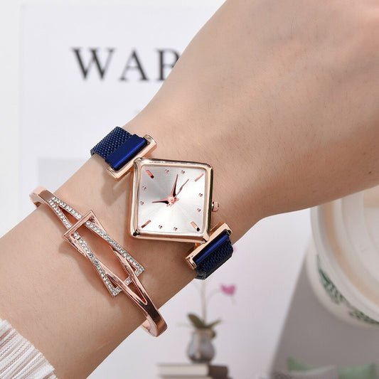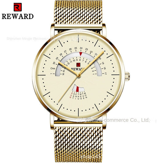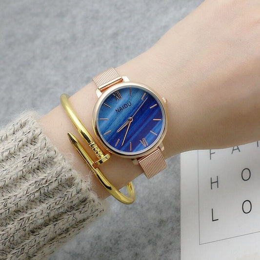 Ceas de damă simplu cu bandă din plasă de aur roz