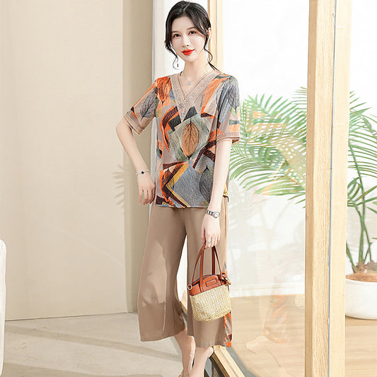 Set din două piese cu pantaloni largi, cu imprimeu la modă retro, dimensiuni mari