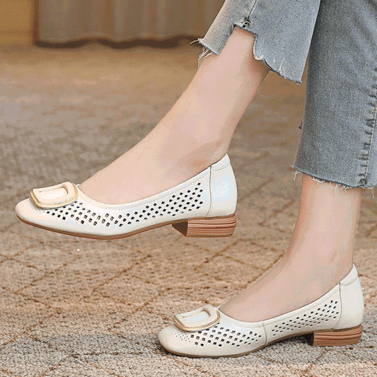 Model nou pentru vara 2023, pantofi loafers din piele de vacă cu perforații, talpă moale și vârf rotund