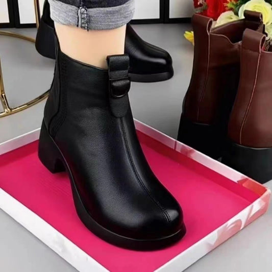 Cizme scurte de damă din piele moale de toamnă și iarnă, cizme Martin, versatile cu toc mijlociu plus cizme de catifea