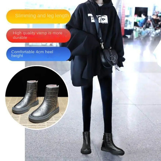 【35-40】Cizme noi de iarnă din piele naturală îngroșată de pluș, cu talpă groasă și pantofi din bumbac cu înălțime crescută.