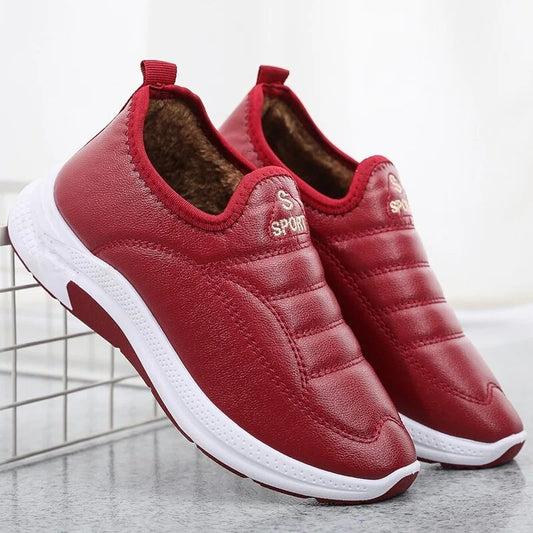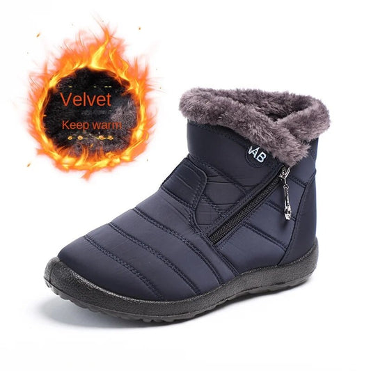【36-41】Iarna stil nou piele impermeabila plus pantofi de catifea pentru mama cizme plate din bumbac calduroase pentru persoane de varsta mijlocie si in varsta
