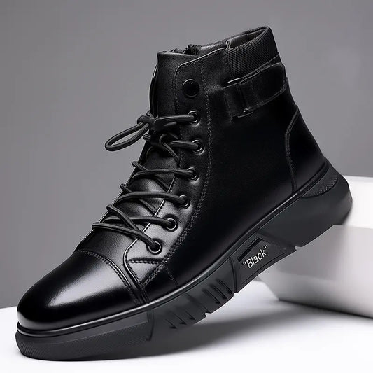 【39-44】 Cizme de iarnă pentru bărbați din piele cu talpă groasă și caldă