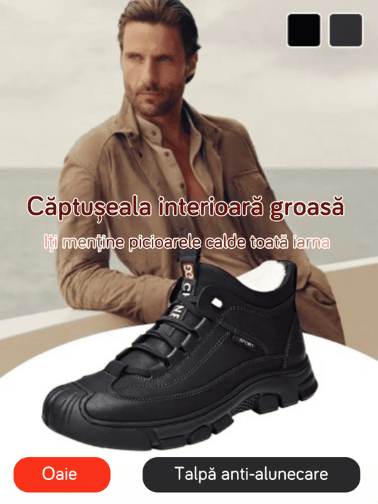 🔥【80%OFF】【39-44】 Cizme de iarnă pentru bărbați din piele cu talpă groasă și caldă