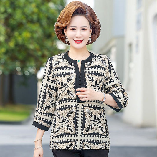 【XL-5XL】Set Din Două Piese 2023, Vară Și Toamnă, Costum Din Șifon Cu Mâneci Trei Sferturi Cu Imprimeu Floral
