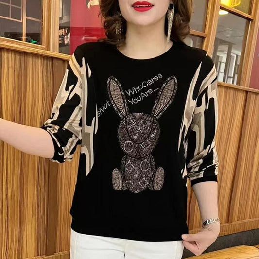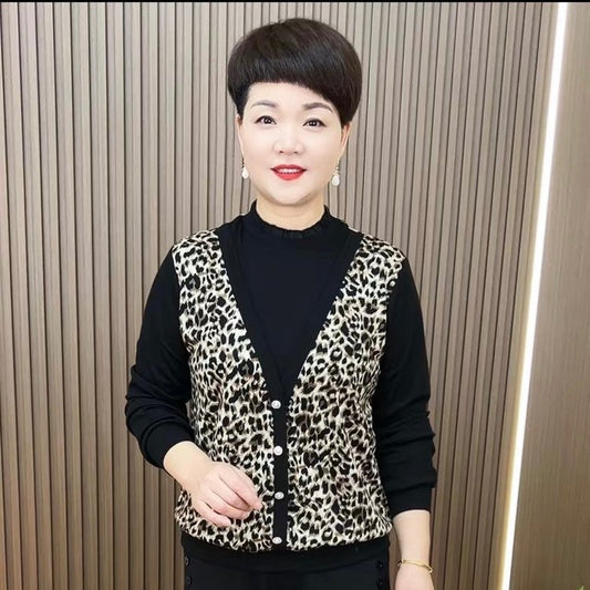 Pulover cu gât rotund pentru mamă, cu fleece retro, de toamnă și iarnă, de mărime mare, cămașă cu fundul cu imprimeu în stil occidental, cu lungime medie, caldă