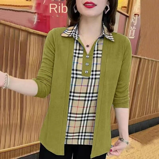 2023 Cămașă noua falsă din două piese cu cusături în carouri la modă de toamna