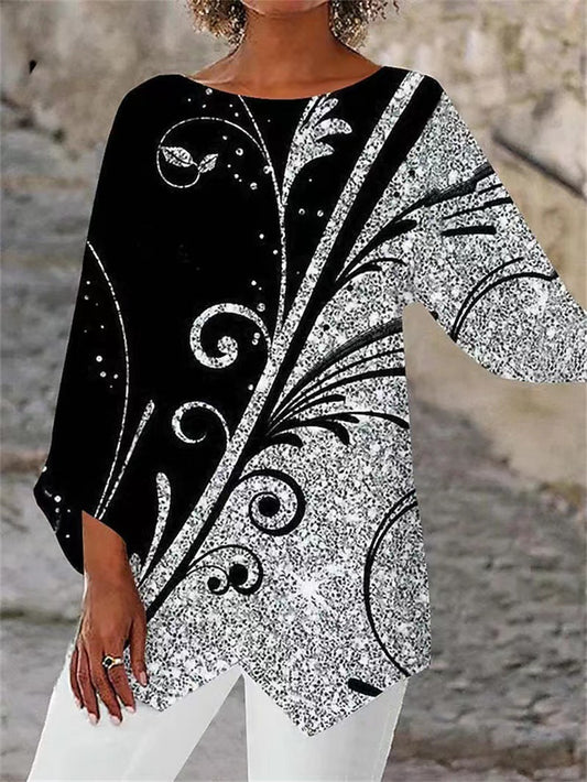 【S-3XL】 Tricou imprimat cu mâneci lungi, fără umeri, de toamnă și iarnă