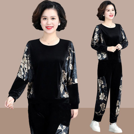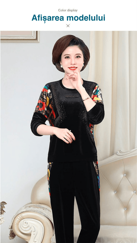 Mamei de toamnă și iarnă din catifea haine noi la modă, largi, subțire, set din două piese