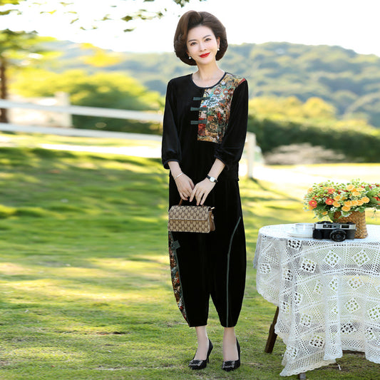 2023 Spring and Autumn New Women's Clothing Fashion Simple Gold Velvet Sports Suit 40-50 Years Old