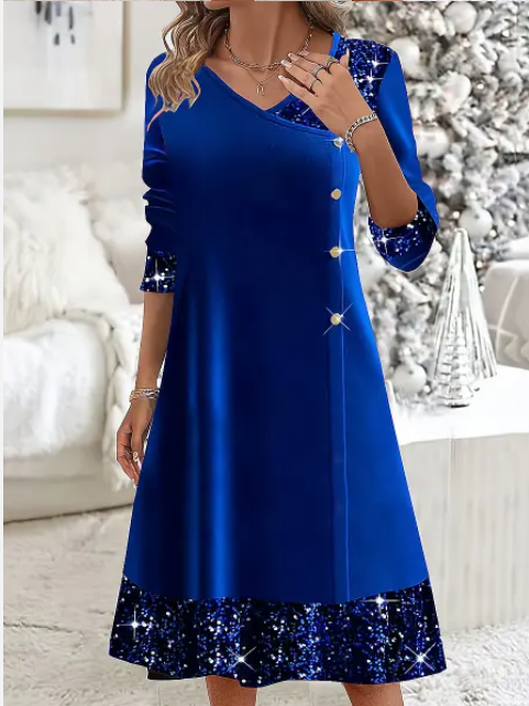 2023 rochie cu mâneci lungi cu decolteu în V, culoare uni, la modă europeană și americană