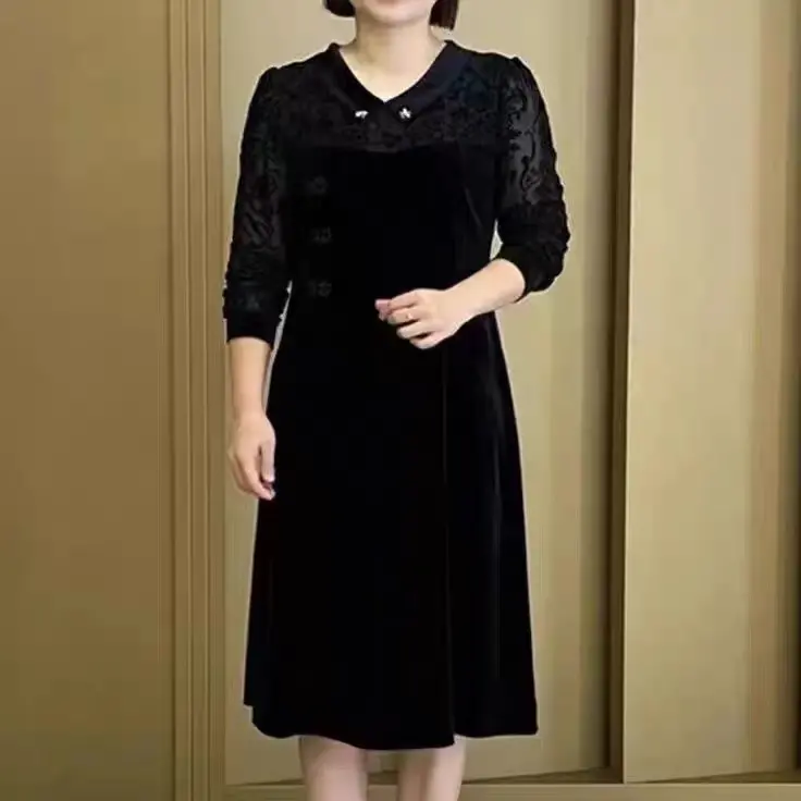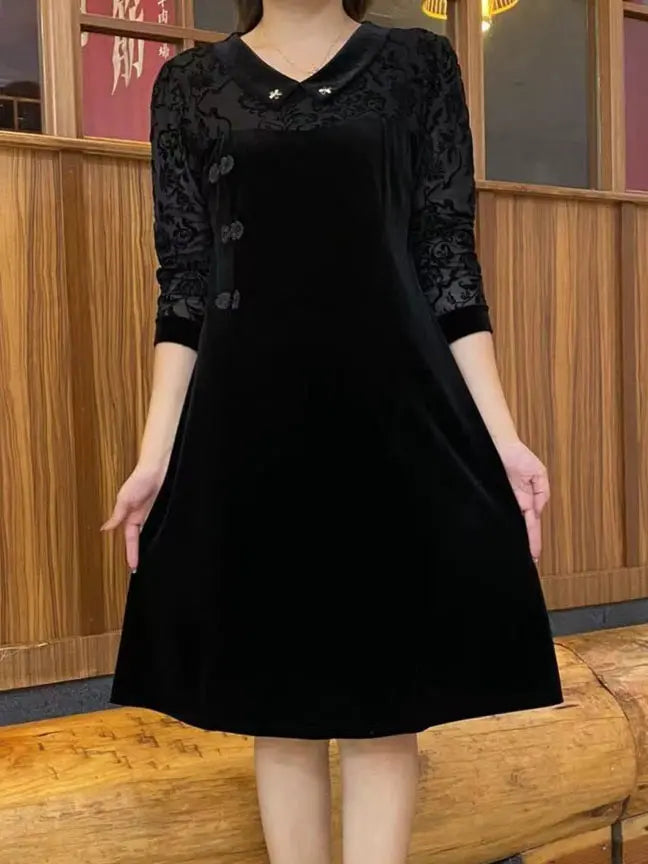 【40-90KG】2023 noua rochie cu guler de papusa din catifea aurie de toamna si iarna