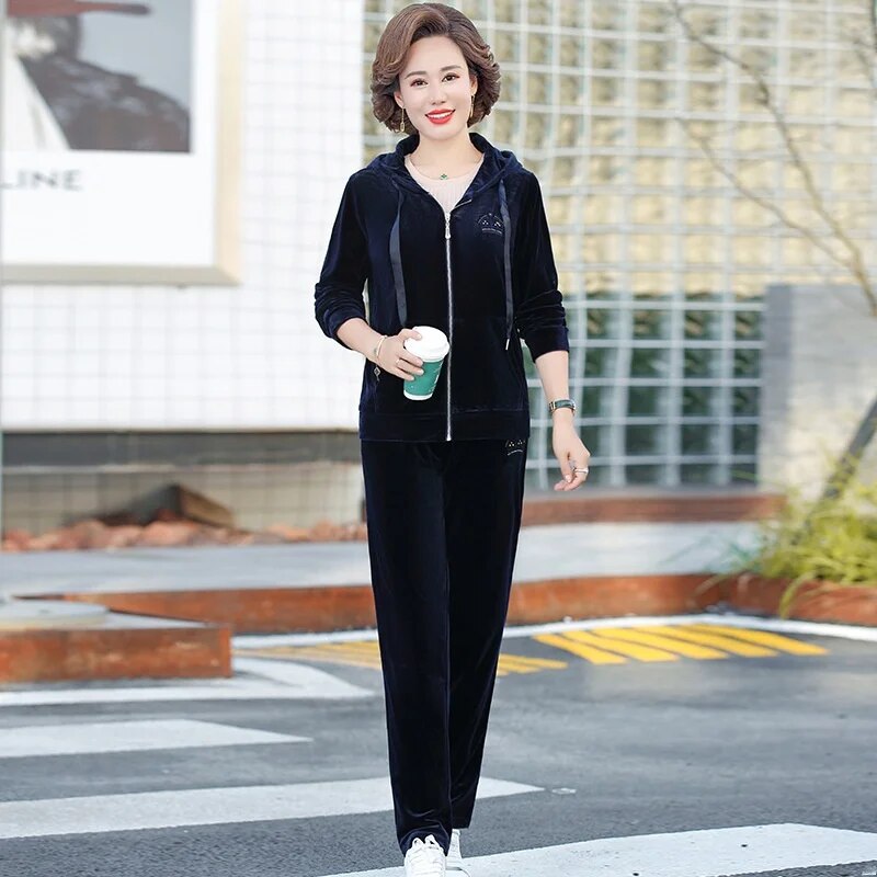 2023 Spring and Autumn New Women's Clothing Fashion Simple Gold Velvet Sports Suit 40-50 Years Old