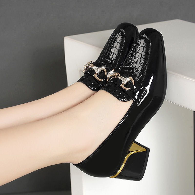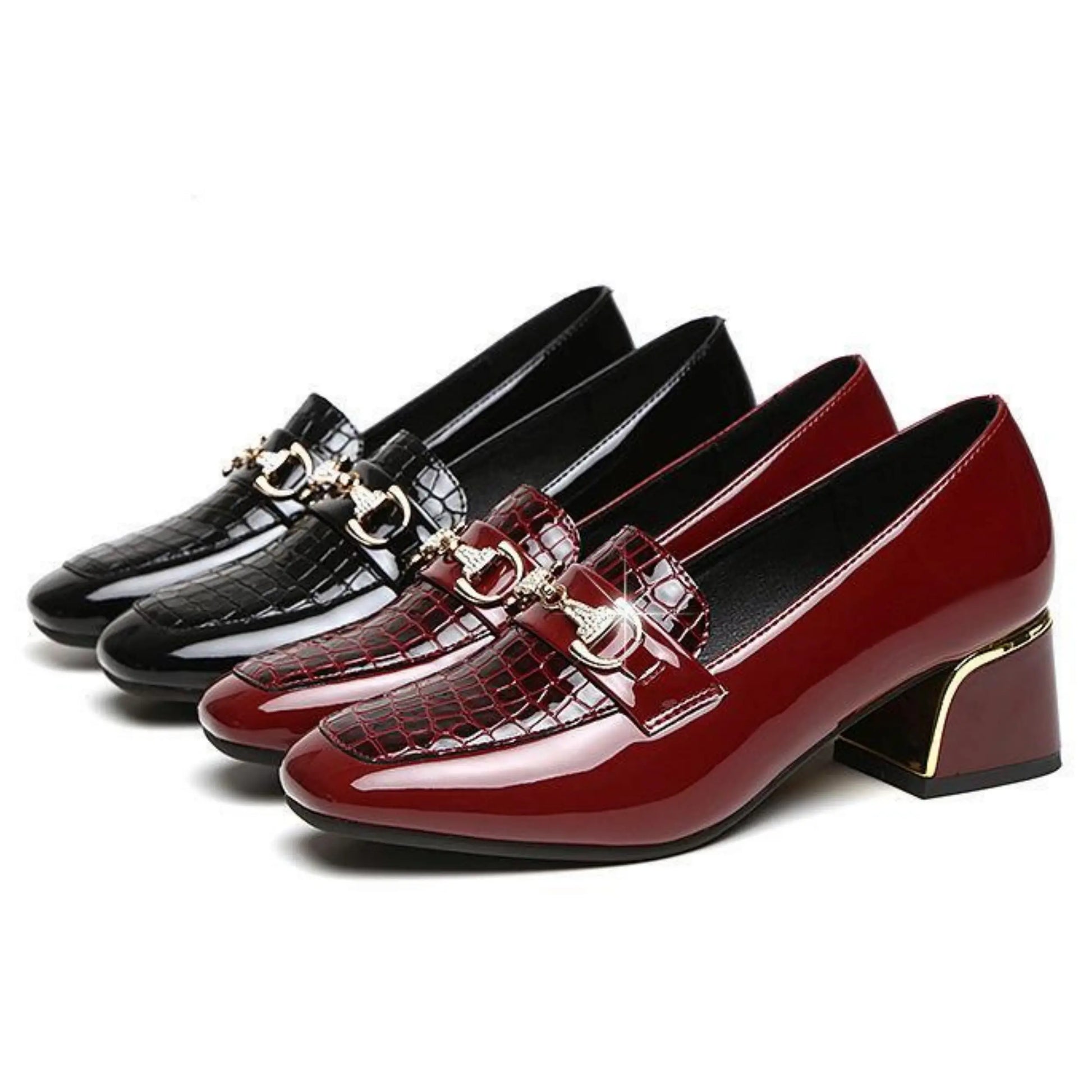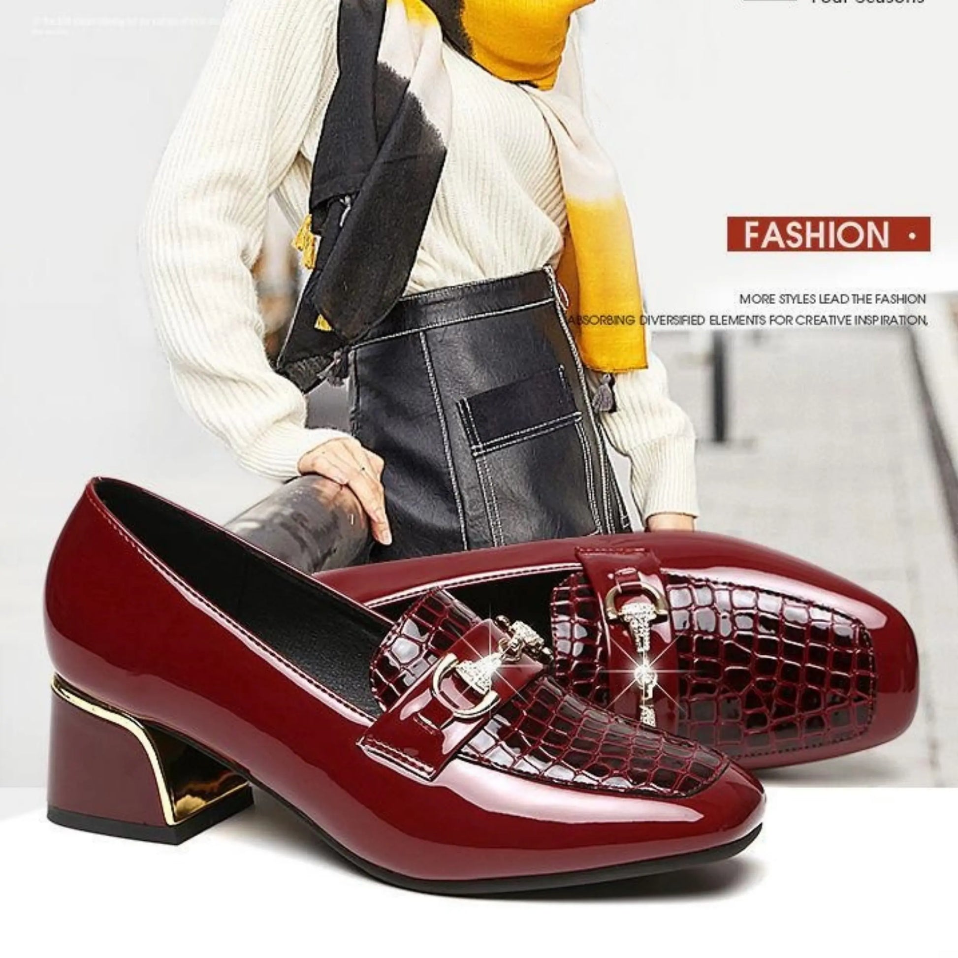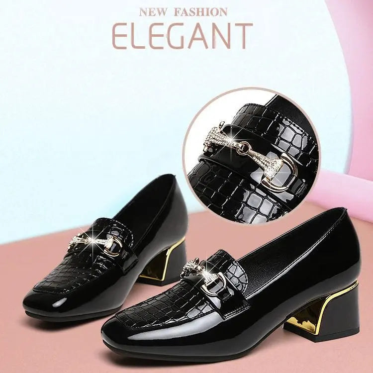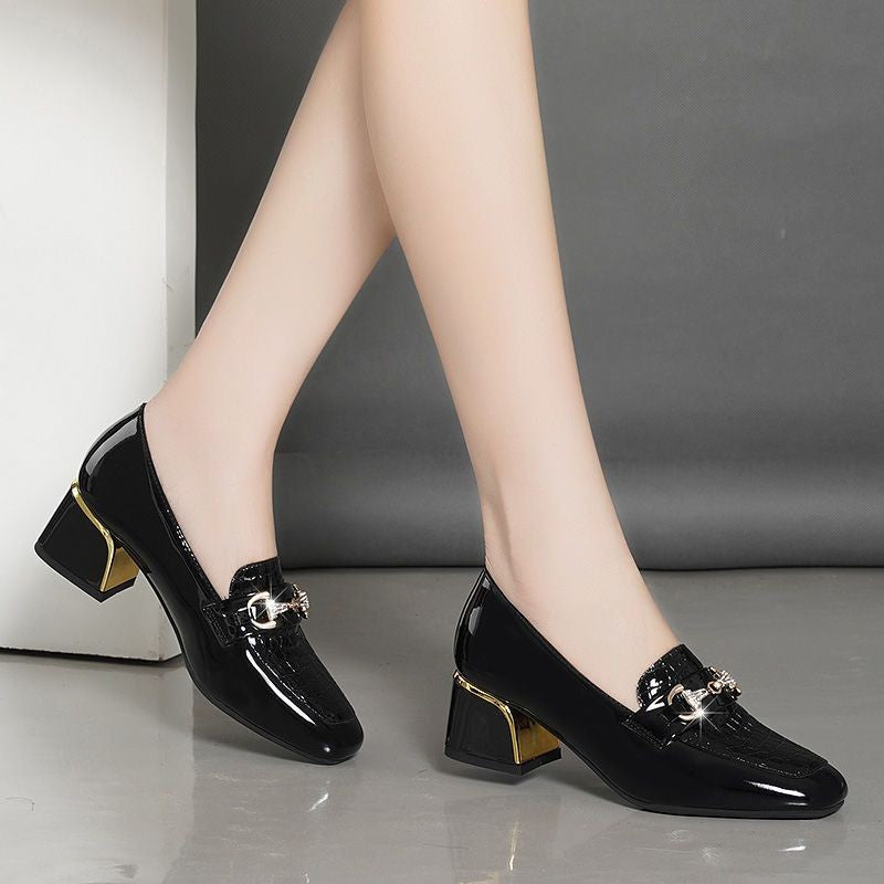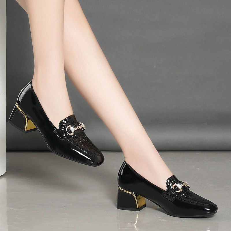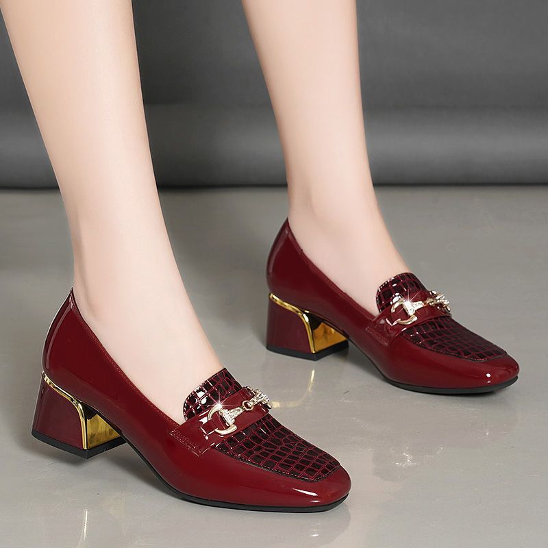 【35-40】 2023 pantofi din piele cu toc gros cu vârf pătrat de toamnă