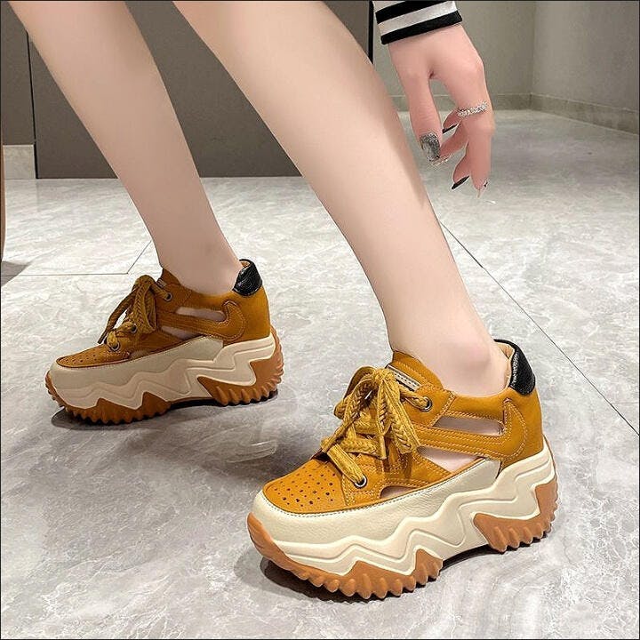 【50%OFF】【35-40】Sandale cu pană cu design decupat pentru femei, pantofi de exterior cu șireturi respirabili, sandale casual cu platformă