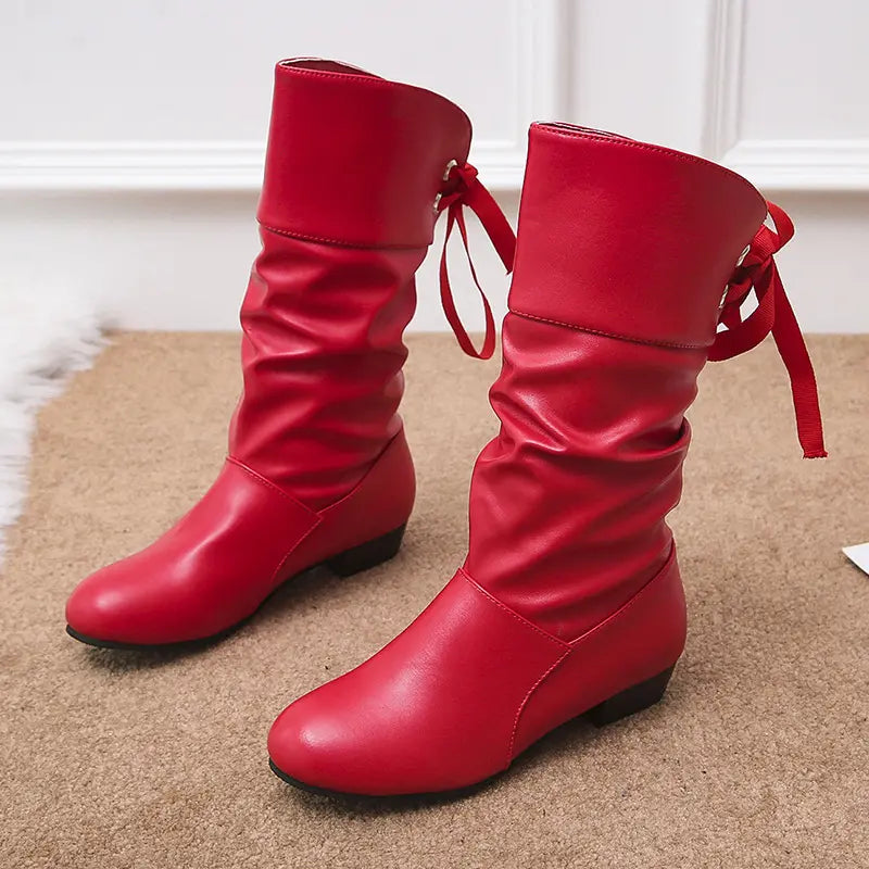 【35-43】2023 toamna noua piele moale cizme la modă cu șireturi la jumătatea gambei