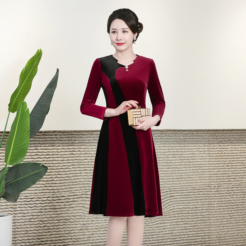 【45-85KG】🔥Sukienka z czerwonego aksamitu na Boże Narodzenie 2023🎄