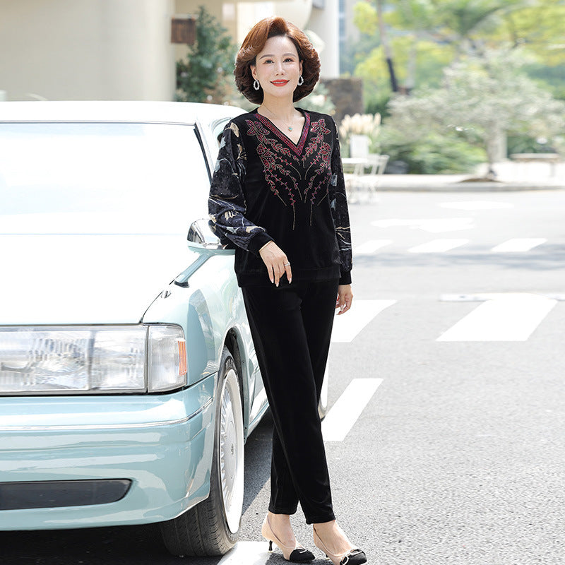 【XL-7XL】 Top din catifea diamant + pantaloni costum calduros casual!
