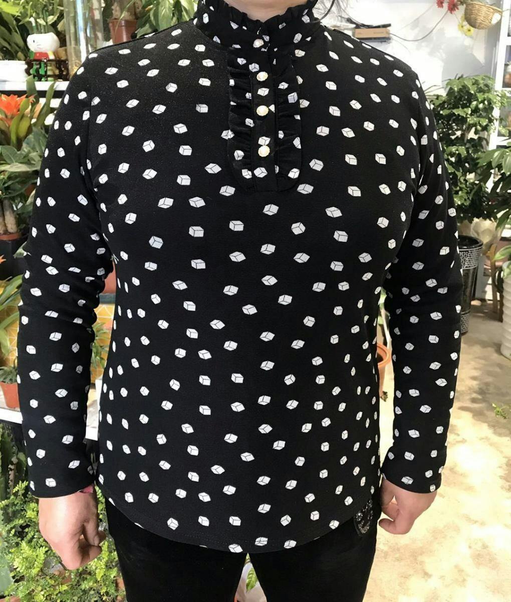 Această cămașă cu mânecă lungă cu imprimeu geometric este în mod serios preferata mea! Țesătura este groasă și arată foarte elegant când o îmbraci. Nu numai că vă poate ține de cald, dar vă poate îmbunătăți și simțul general la modă. Fie că sunt combinate cu blugi sau cu o fustă, îți poți arăta cu ușurință moda și personalitatea.