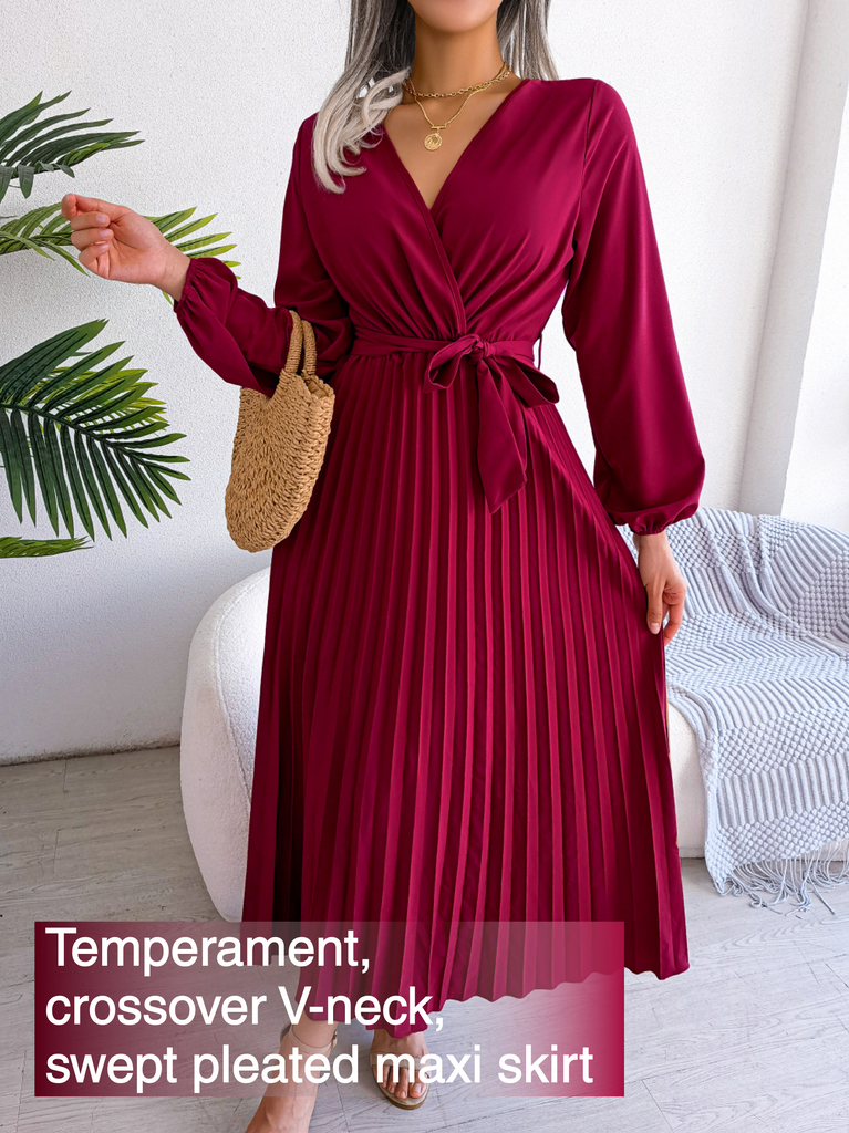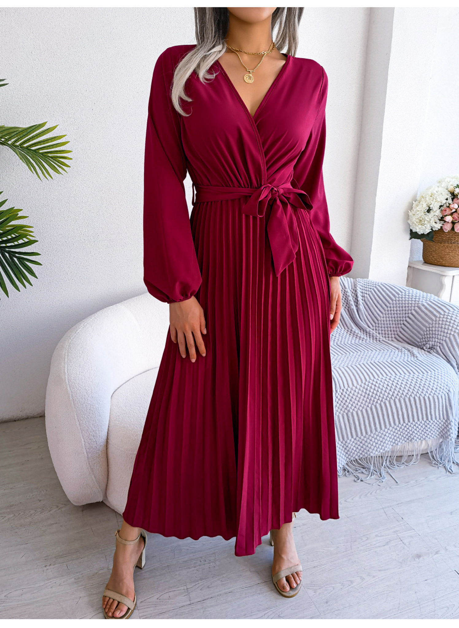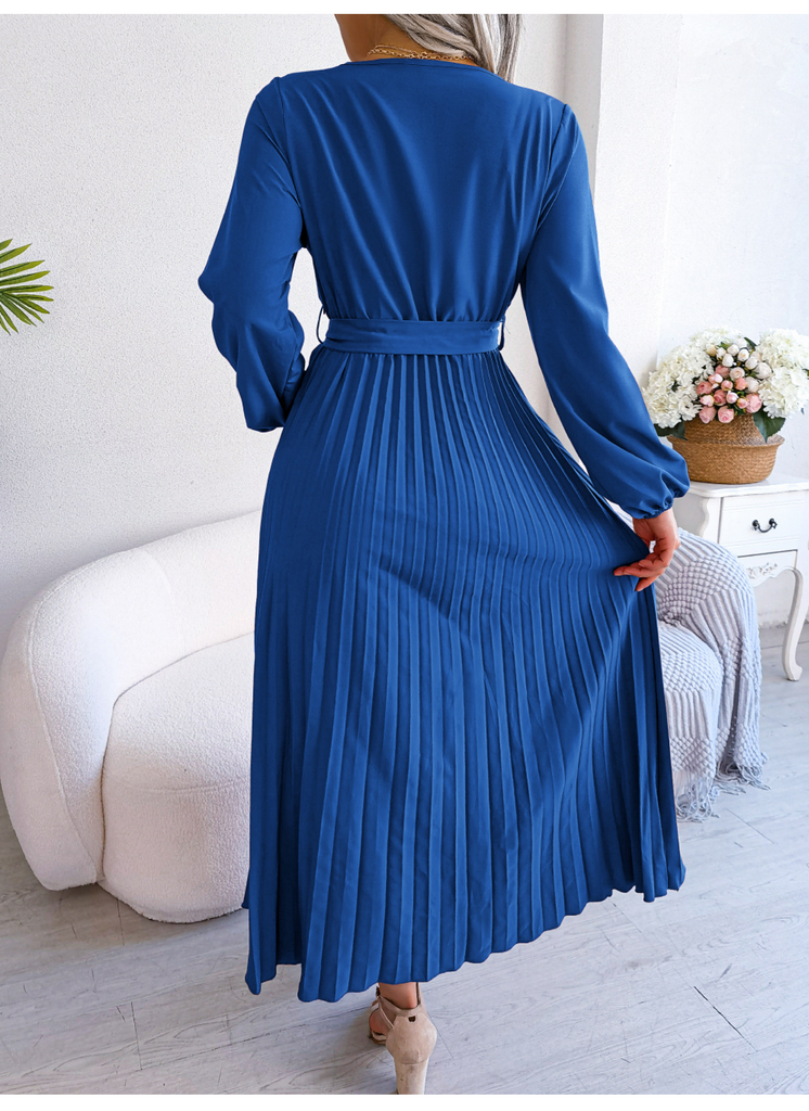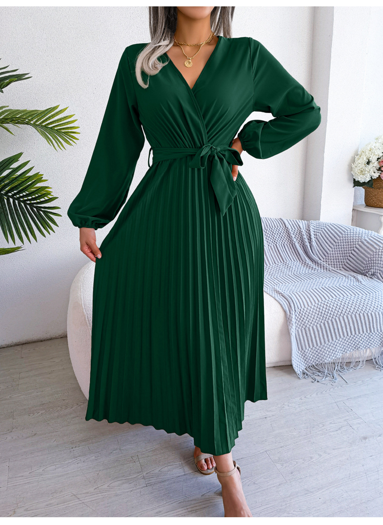 Fusta lungă nouă, cu decolteu în V, pliat, cu mânecă lanternă