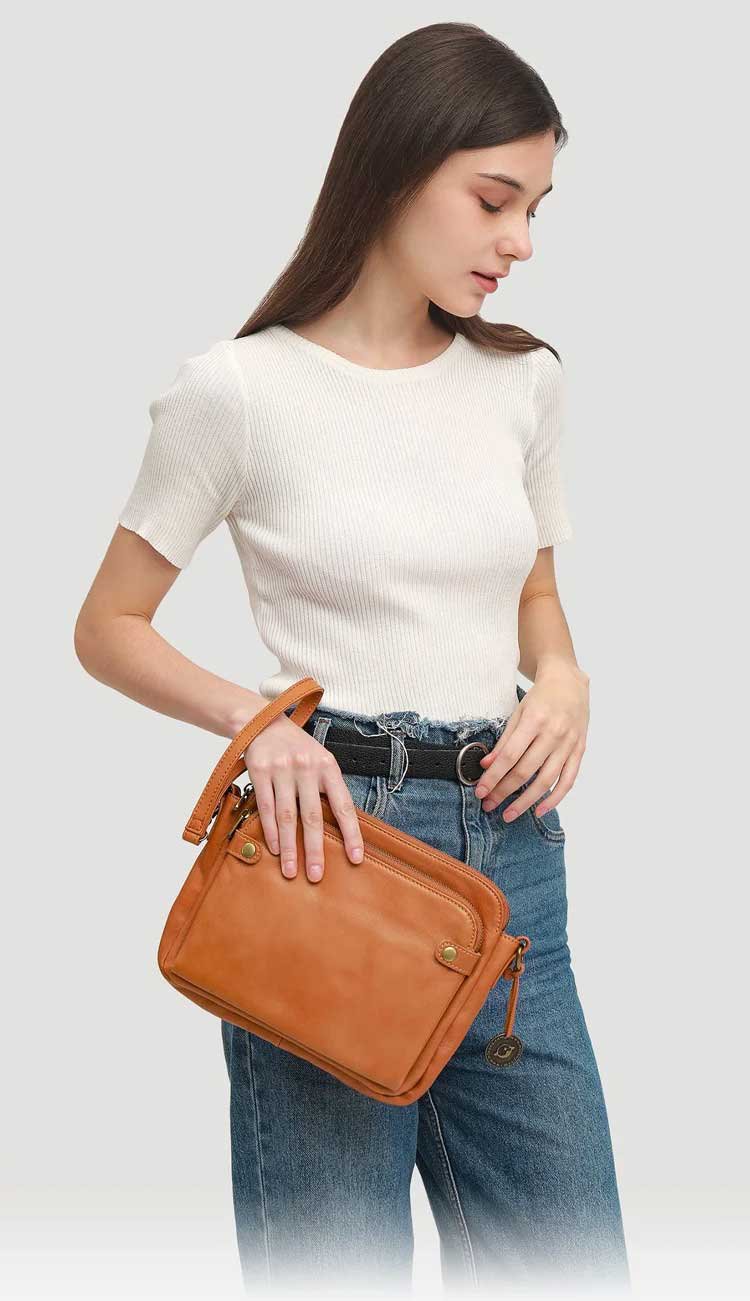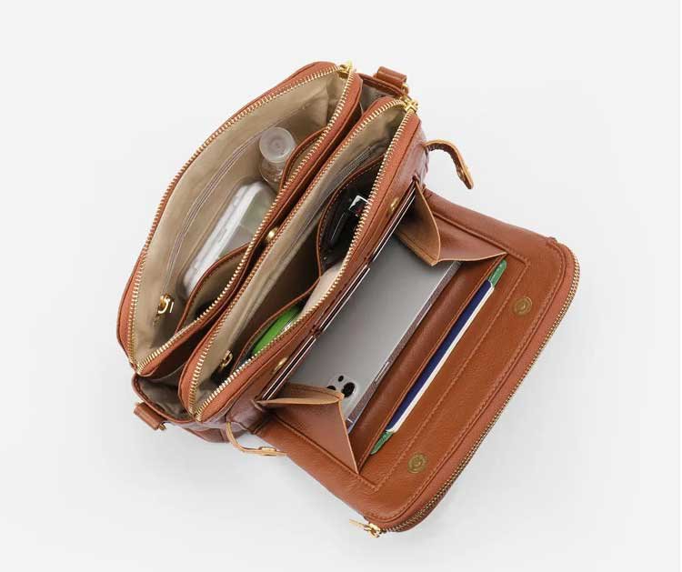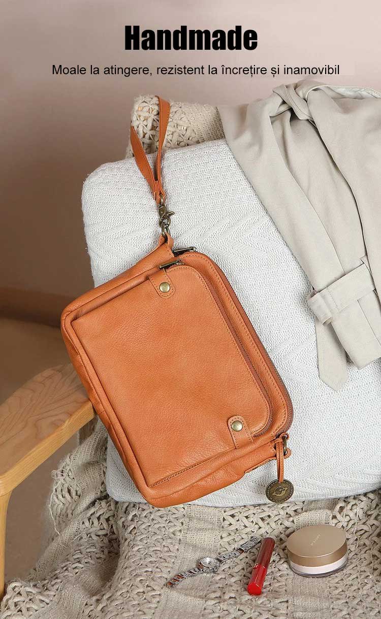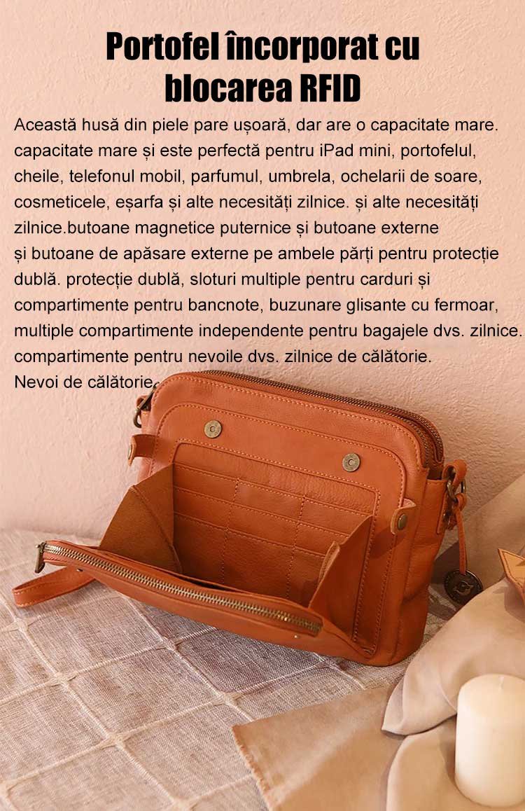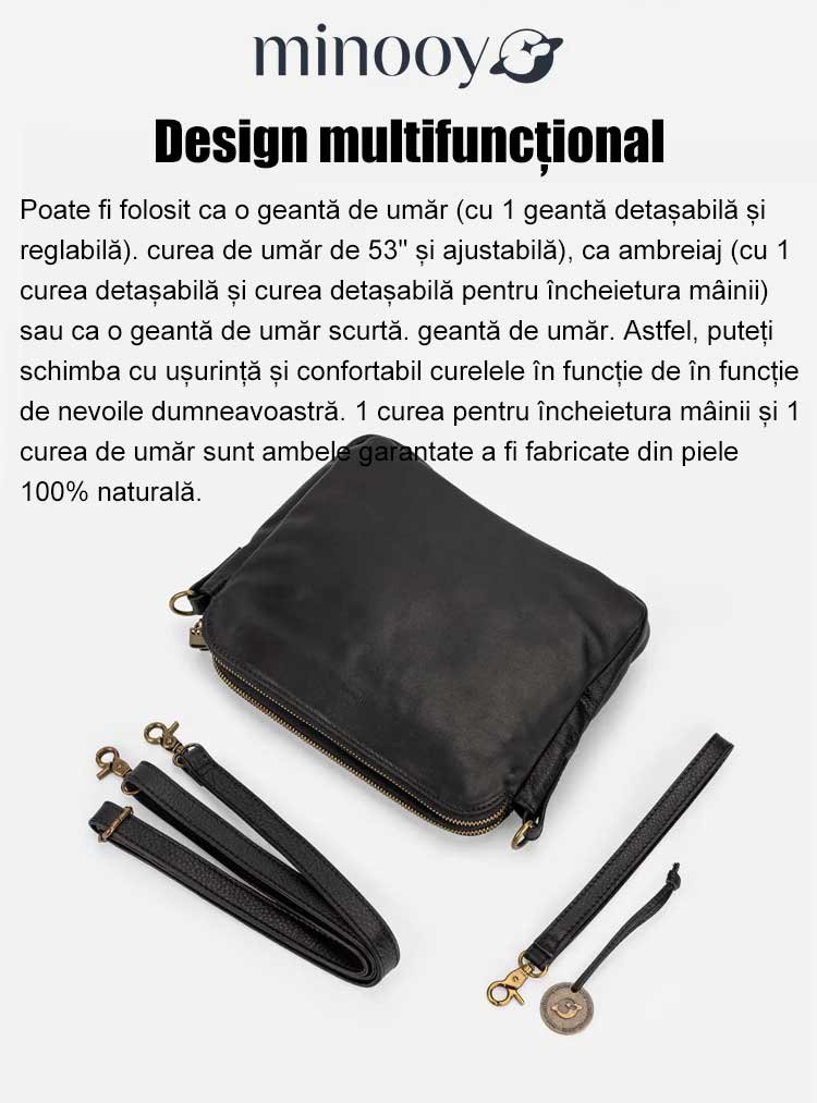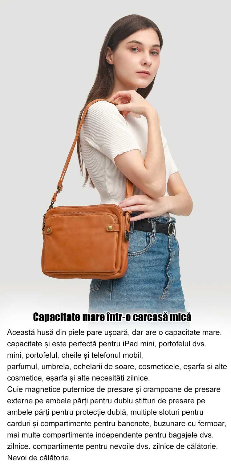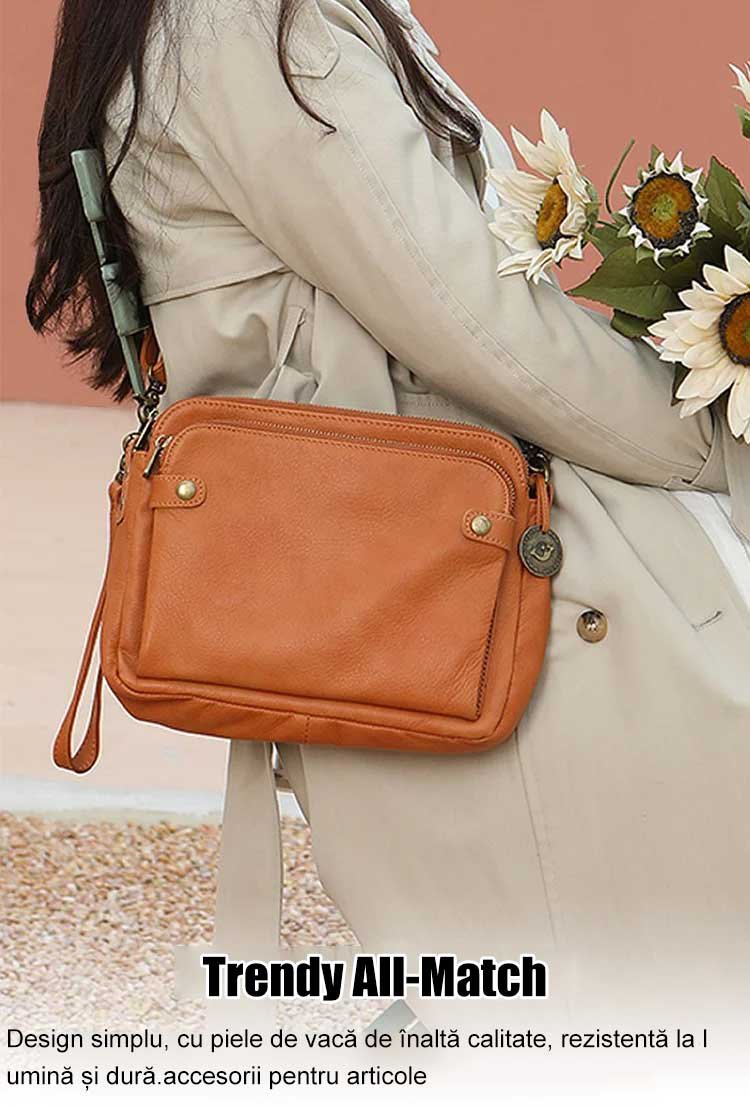 Această geantă este pur și simplu minunată! Mă încântă designul tristrat din piele și dimensiunea sa compactă, perfectă pentru a căra toate lucrurile esențiale. Sunt foarte mulțumită!
