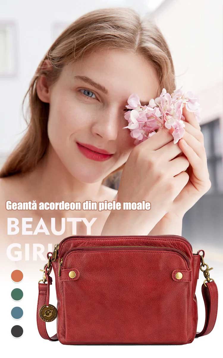 Sunt extrem de mulțumită de această geantă! Materialul din piele este de cea mai bună calitate, iar designul tristrat îi conferă un aspect modern și atrăgător. Este un accesoriu indispensabil!