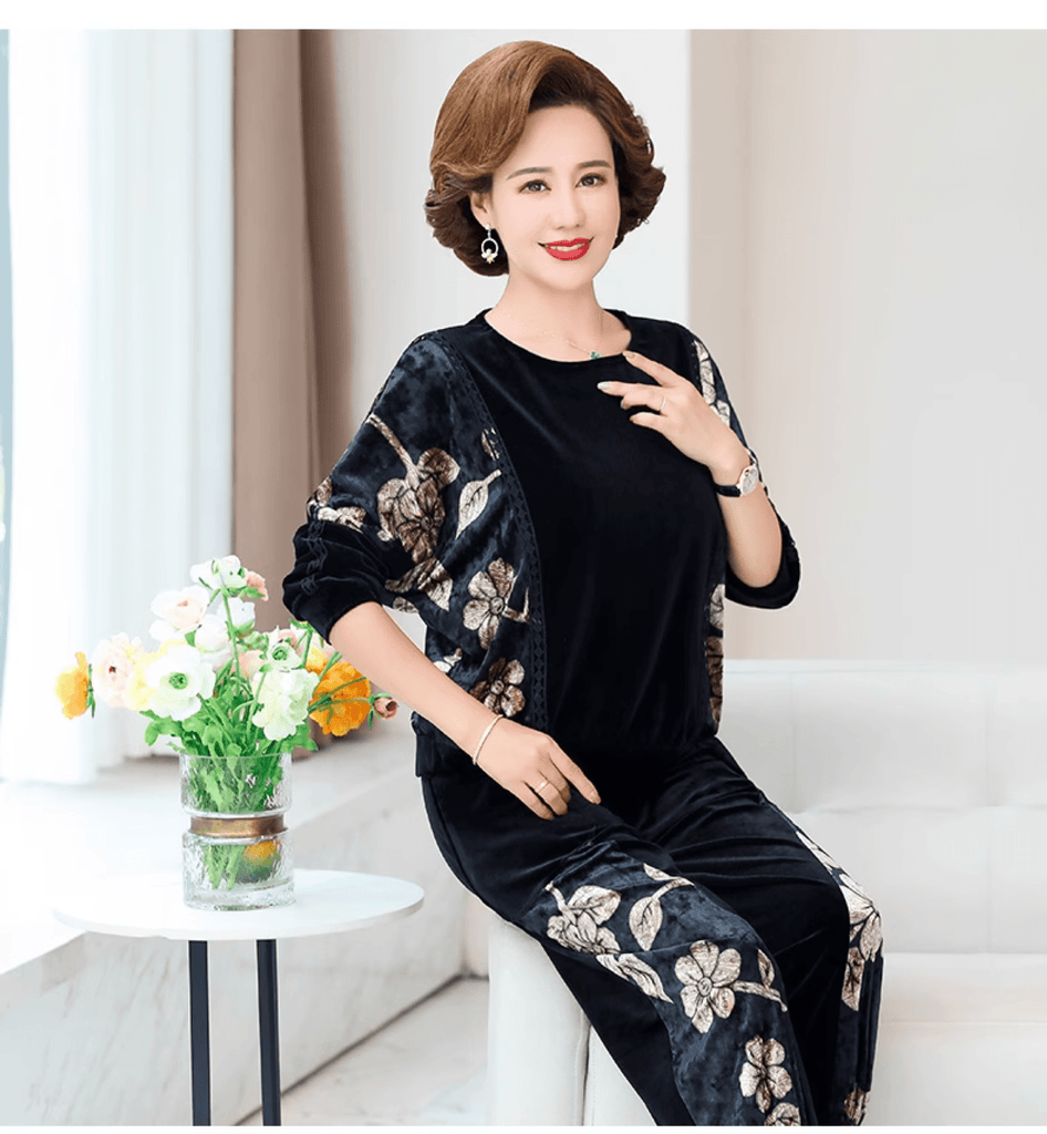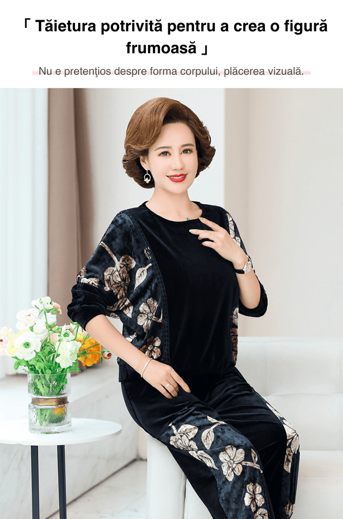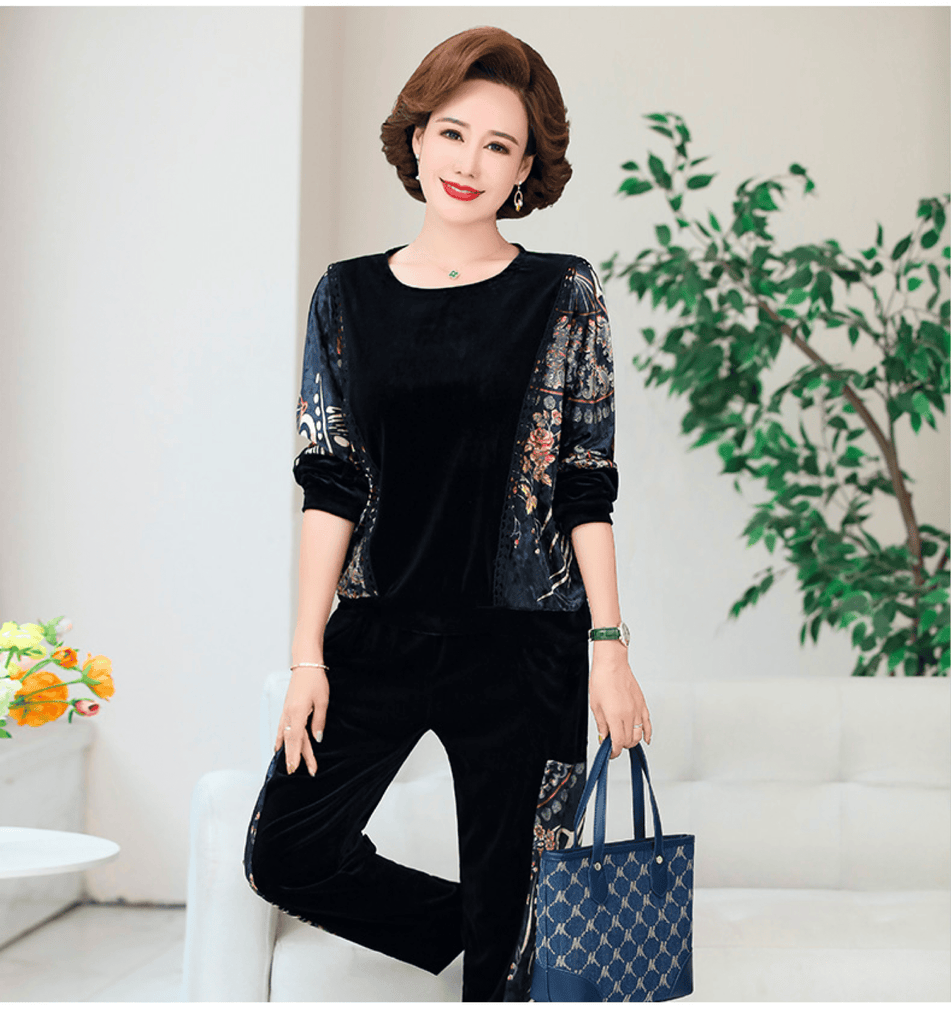 2023, primăvară și toamnă, pentru femei, din catifea aurie, set din două piese pentru mamă