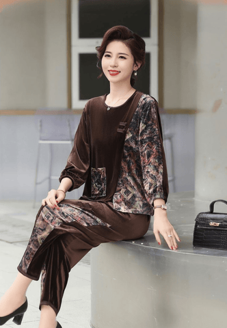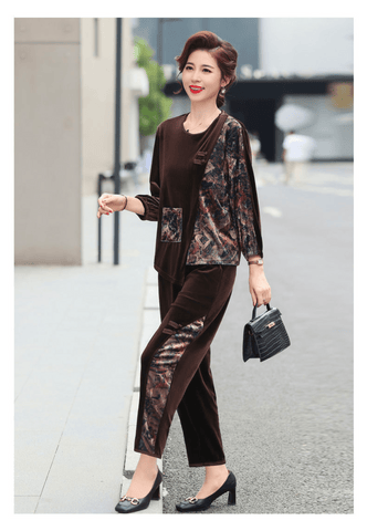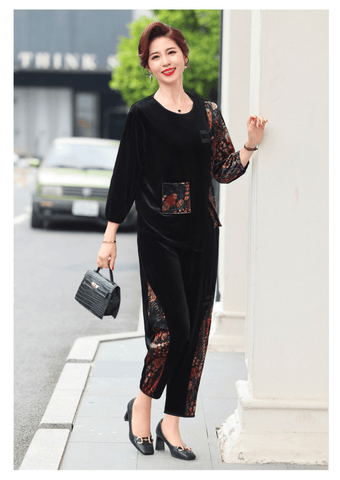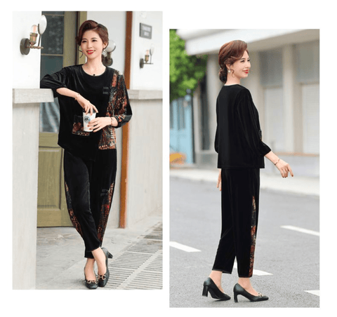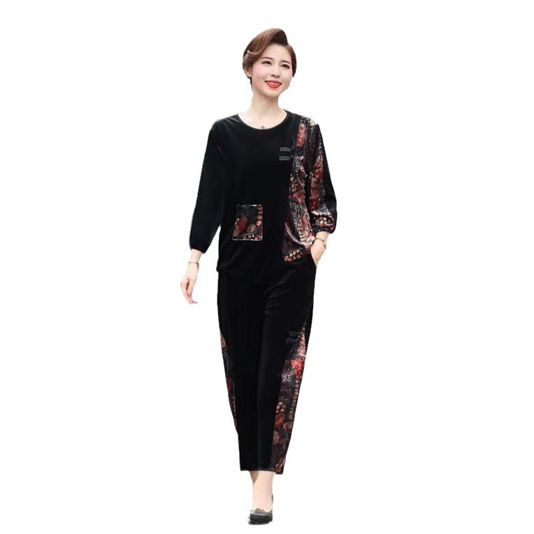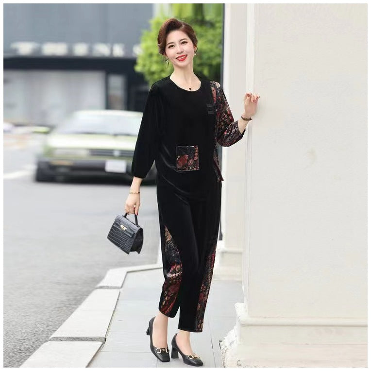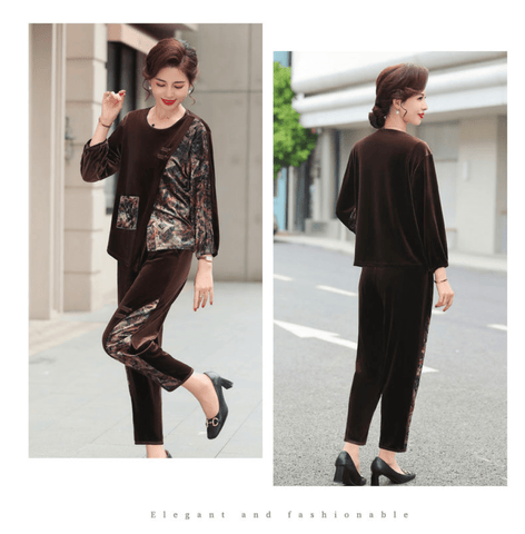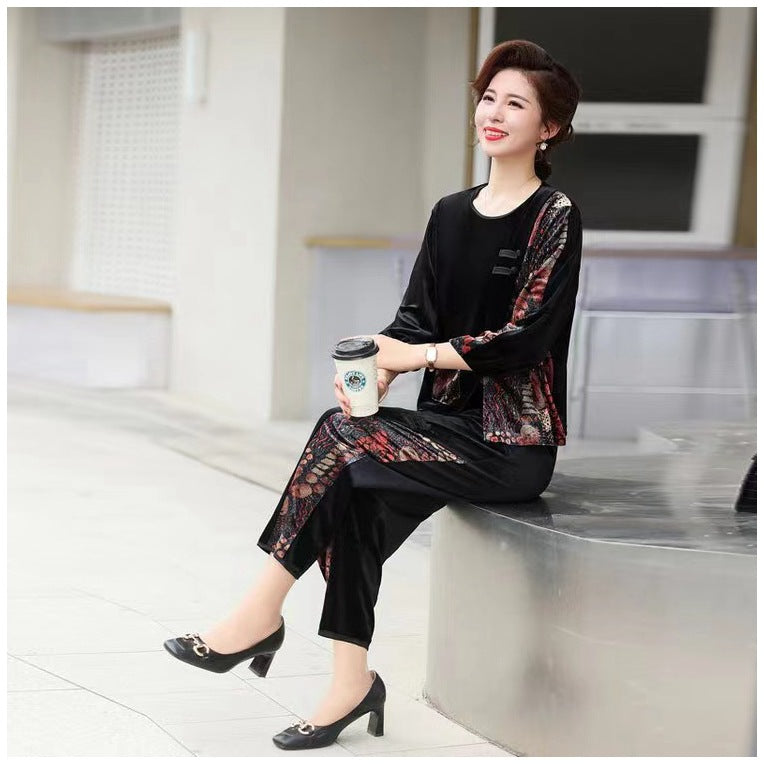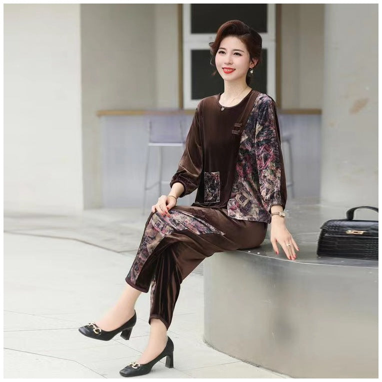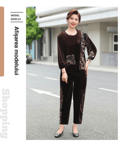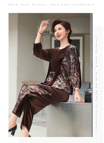 Mamei de toamnă și iarnă din catifea haine noi la modă, largi, subțire, set din două piese