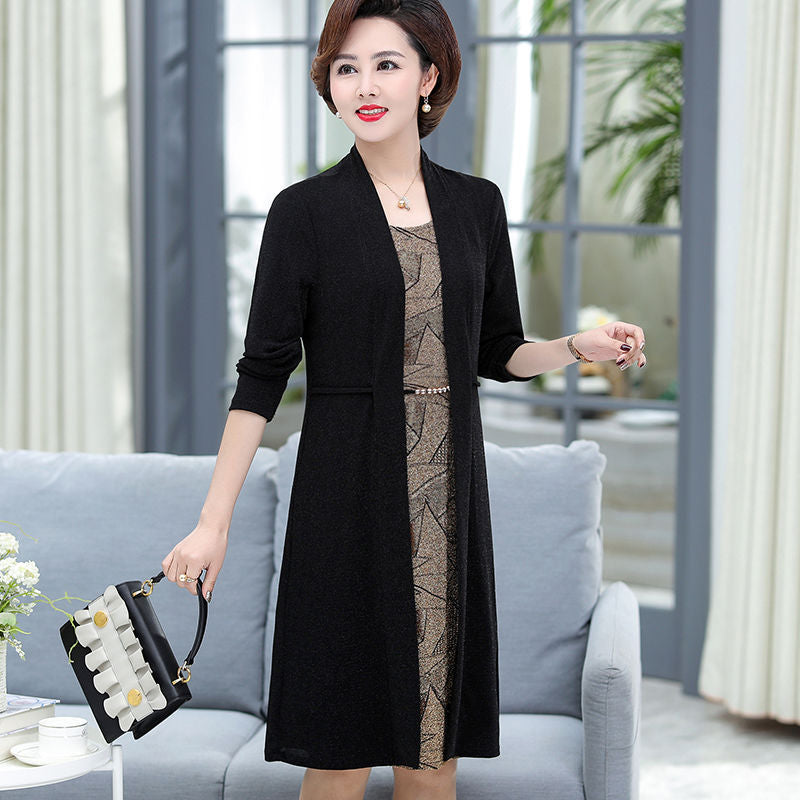 2023 Nou set din două piese de rochie lungă falsă cu mâneci lungi, temperament de toamnă, model de mamă
