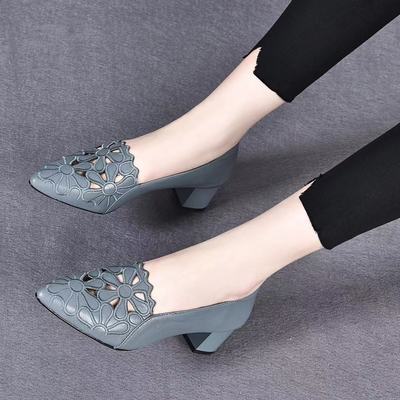 Patru anotimpuri cu toc gros, fund moale, brodat, gol, pantofi de modă respirabili