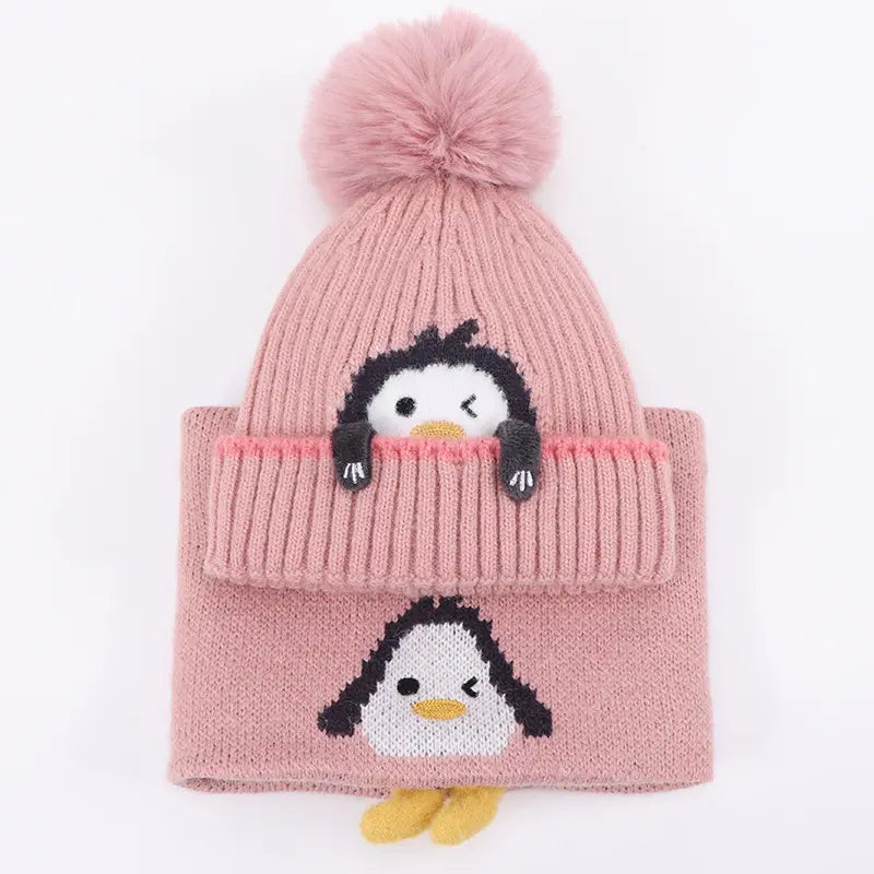 【Potrivit pentru 1-3 ani】Set pălărie și eșarfă pentru copii pinguin