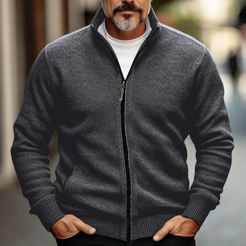 Ten męski sweterek zapinany na zamek to moja ulubiona broń zimowa. Różnorodność fasonów pozwala mi nosić go w swoim własnym, niepowtarzalnym stylu przy różnych okazjach, a zamek błyskawiczny dodaje również poczucia mody