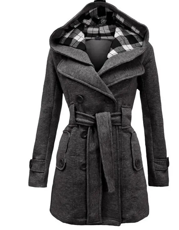 【S-3XL】Jachetă călduroasă cu glugă de lungime medie pentru femei
